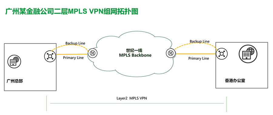 · 基于创科技术的MPLS VPN骨干网,为客户在广州和香港之间提供层的MPLS VPN架构满足客户的需求。